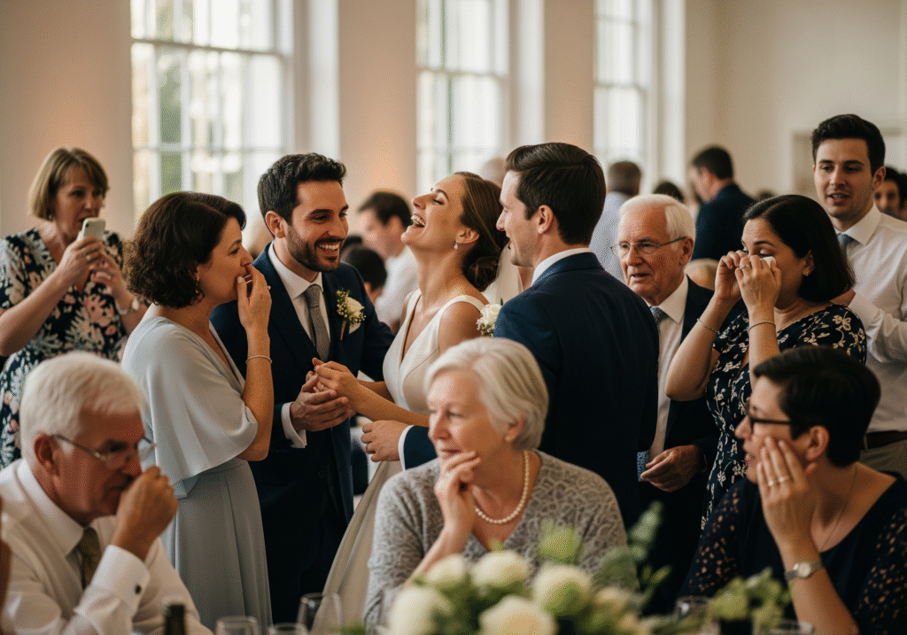 Moments like shared jokes, quiet conversations, and happy tears create the most powerful images.