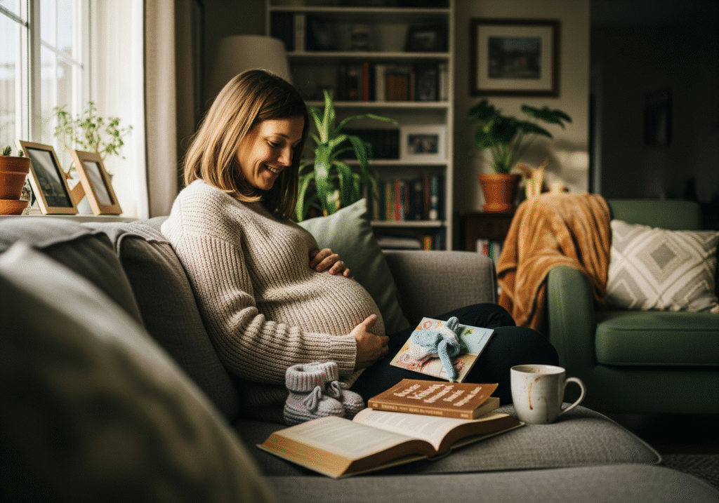 A lifestyle maternity shoot takes place in your own home, capturing everyday moments in a relaxed setting. This approach focuses on comfort, authenticity, and storytelling.